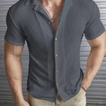 Odkryj idealne połączenie komfortu i stylu z naszą męską koszulą dzianinową w białym kolorze z krótkim rękawem. Wykonana z oddychającego materiału dzianinowego, ta koszula oferuje wyjątkowy komfort, idealna na ciepłe dni. Klasyczny biały kolor i design z guzikami nadają jej elegancji i wszechstronności na każdą okazję – od casualowych wyjść po stylowe wieczory.