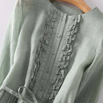 Ta prosta i elegancka długa sukienka w delikatnym odcieniu zieleni emanuje świeżością i naturalną elegancją. Z lekkim sylwetką i luźnym krojem, delikatnie otula ciało i oferuje wyjątkowy komfort w każdej chwili dnia.