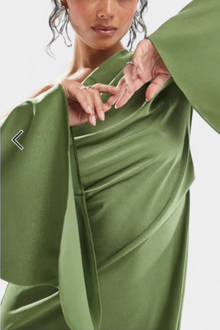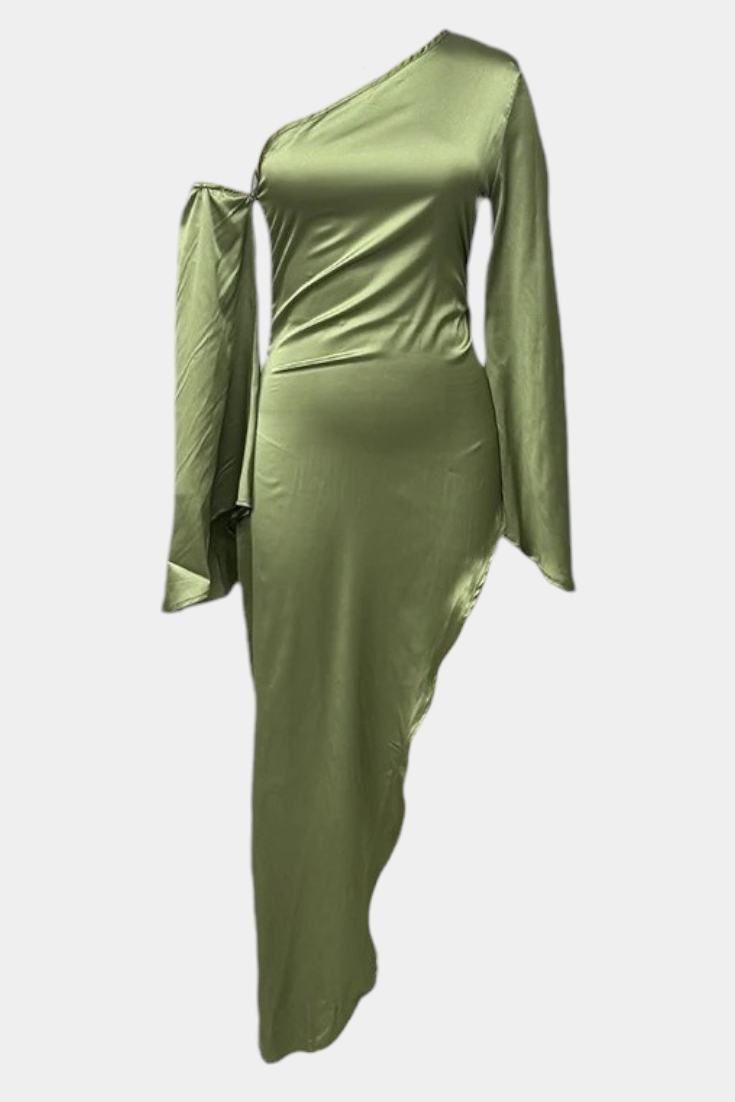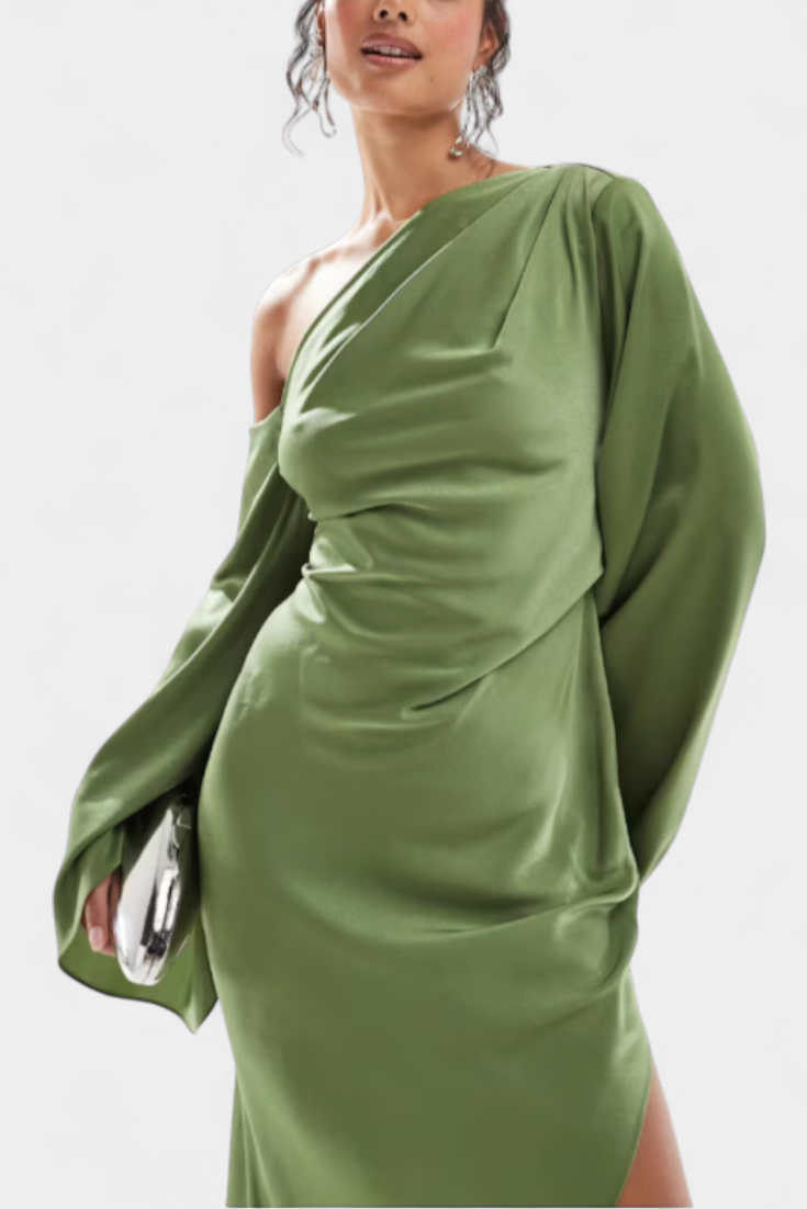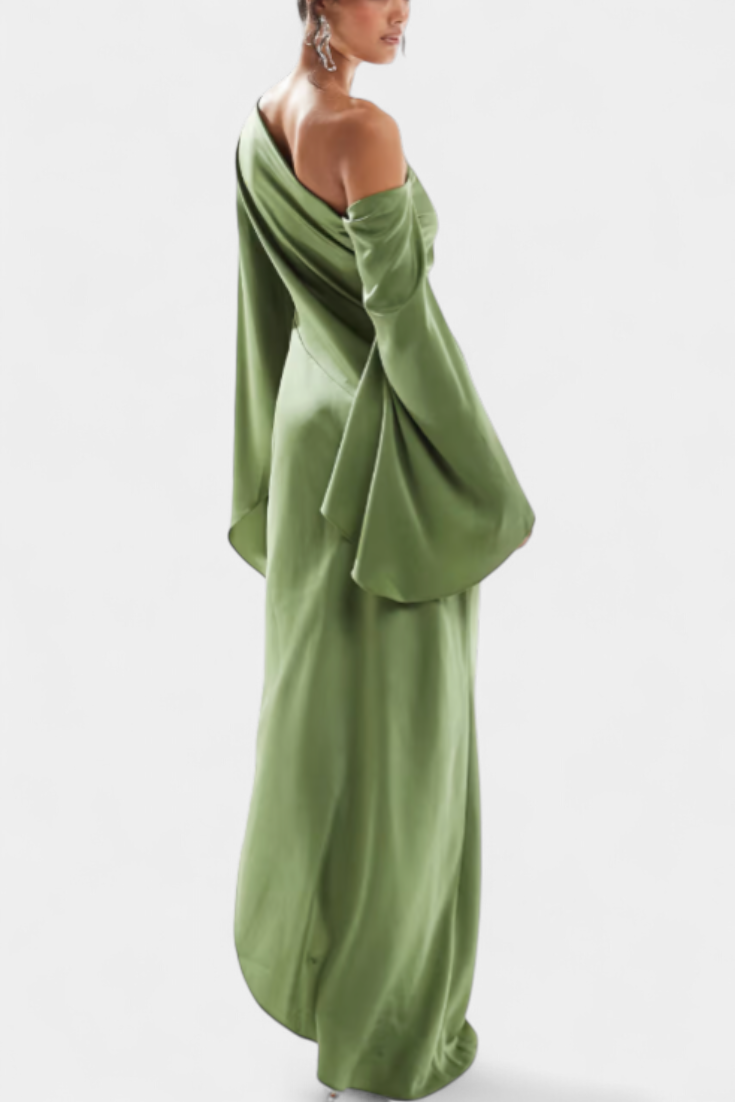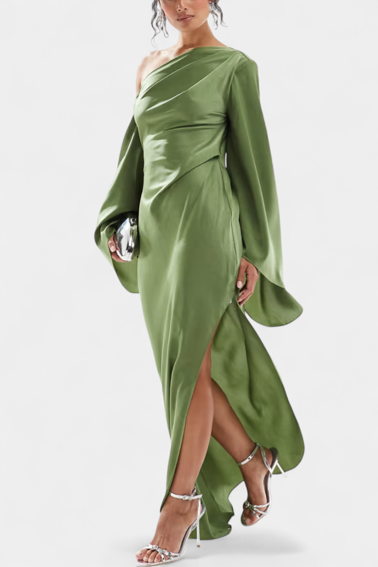 Imponująca i wyrafinowana, sukienka Franka łączy w sobie projekt z jednym ramieniem z płynącą sylwetką, która równoważy dramatyzm i elegancję. Jej asymetryczny dekolt stylowo otacza figurę, podczas gdy wcięcie w talii podkreśla sylwetkę, a płynny brzeg nadaje naturalny ruch. Część stworzona, aby wyróżniać się klasą w każdej specjalnej okazji.