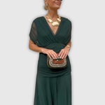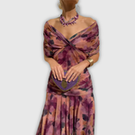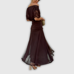 Kobieca sukienka maxi w kwiatowy wzór, która łączy romantyczny urok z wygodą noszenia. Dekolt w serek subtelnie podkreśla sylwetkę i wysmukla górną część ciała, a lekki materiał miękko układa się na figurze.