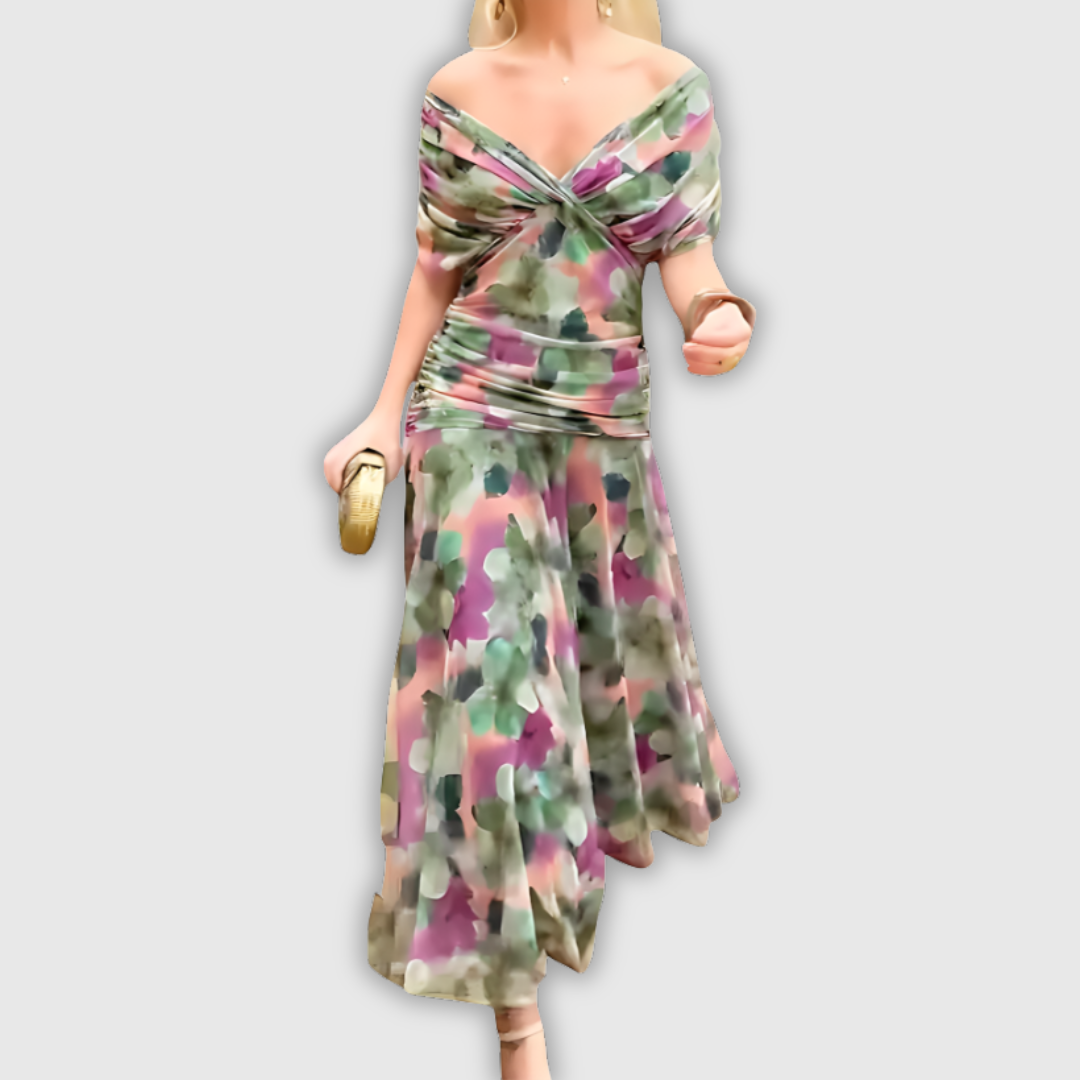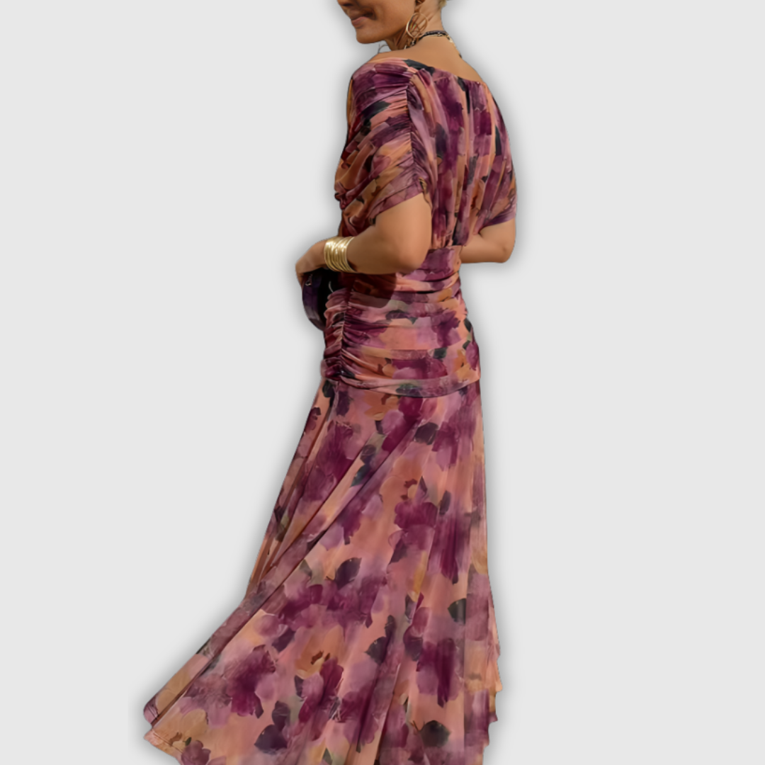 Florendra | Długa sukienka maxi w kwiaty z dekoltem V